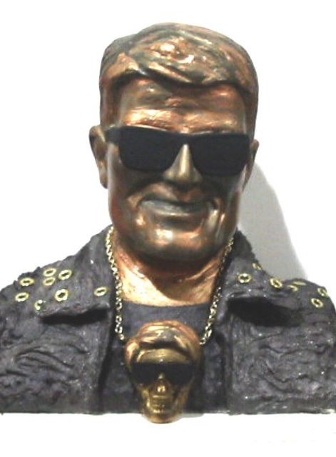 Heino als Rocker. Porträtbüste, Format 38 X 40 X 20 cm. Ausgeführt im Material-Mix von Bildhauer Detlef Krebs (Düsseldorf). Der blonde Sänger mit schwarzer Sonnenbrille ist durch seinen angenehmen Bariton zu einer Ikone der Volksmusik geworden.