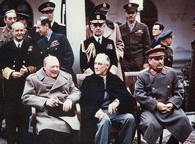 Erinnerung an die Geschichte: Die Konferenz von Jalta (Krim-Konferenz) war ein diplomatisches Treffen der alliierten Staatschefs Franklin D. Roosevelt (USA), Winston Churchill (Vereinigtes Königreich) und Josef Stalin (Sowjetunion) . Hauptthemen waren die Aufteilung Deutschlands, die Vertreibung der Deutschen aus ihren historischen Siedlungsgebieten und die Machtverteilung nach dem Ende des Krieges. Stalin machte dabei für sein kommunistisches Regime die fetteste Beute".