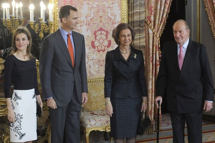 Auch in königlichen Familien fällt ein Generationenwechsel nicht leicht. Die Kinder werden erwachsen und auf die Eltern kommt die meist doch schmerzhafte Entscheidung zu: langsam los lassen und an den Ruhestand zu denken. Das Foto zeigt König Juan Carlos und seine Ehefrau Königin Sofia mit ernsten Gesichtern sowie den Kronprinzen und die 41-jährige Prinzessin Letitzia (links). In Kürze wird sie als Ehefrau den Titel Königin tragen. Für Fans der Royals klingt das wie in einem Märchen.