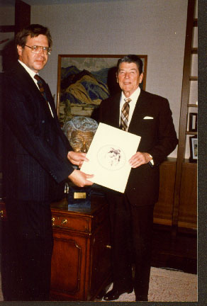 Consul B. John Zavrel with President Ronald Reagan in the President's office in Los Angeles.