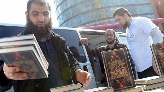 Öffentliche Aktion der Salafisten in Berlin: Die vom deutschen Verfassungsschutz als radikal-islamisch" eingestufte Bewegung der Muslime beim Verteilen von kostenlosen Exemplaren des Koran in der Hauptstadt Berlin. Die Salafisten lösten mit ihrer Missionierung unter dem Motto Lies!" (Read!) eine breite politische Debatte aus. Das Ergebnis der Proteste ist bescheiden. Die Missionsarbeit geht weiter. Es erhebt sich die Fraget: was wäre, wenn Islamisten vor dem Weißen Haus in Washington oder vor dem Kapitol englische Ausgaben des Koran" verteilen würden, die Verunglimpfungen gegen Christen und Juden enthielt ?