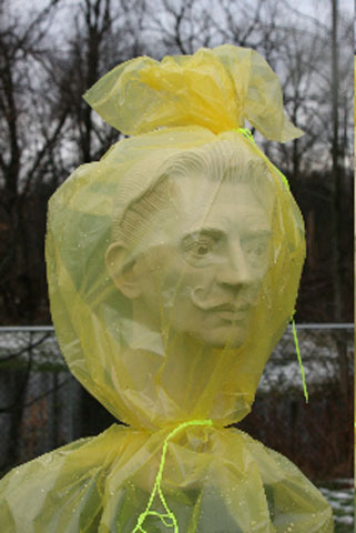 "Christo was here ?" The Alexander Garden in the winter of 2010 in the town of Clarence, New York. Travelers who drive from New York City to Buffalo can see in this historical town a group of sculptures, veiled in heavy yellow plastic sheets. The sculptures stand in the Sculpture Garden of the US Museum of European Art (MEAUS). A lover of modern art will at once think: "Was the famous "Wrapper" Christo here?" The 'signature features' of the Bulgarian-born artist known for arranging 'art events' around the world are veilings and wrappings of various objects.