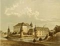 Schloss Nörvenich vor über 150 Jahren. Der hohen Kunst der damaligen Lithographen ist es zu verdanken, dass diese Ansicht des Schlosses entstand. Der königliche Hofbuchhändler Alexander Duncker (Berlin) hat die zwischen 1857 und 1883 geschaffene Bilder-Suite von 120 Adelssitzen publiziert.