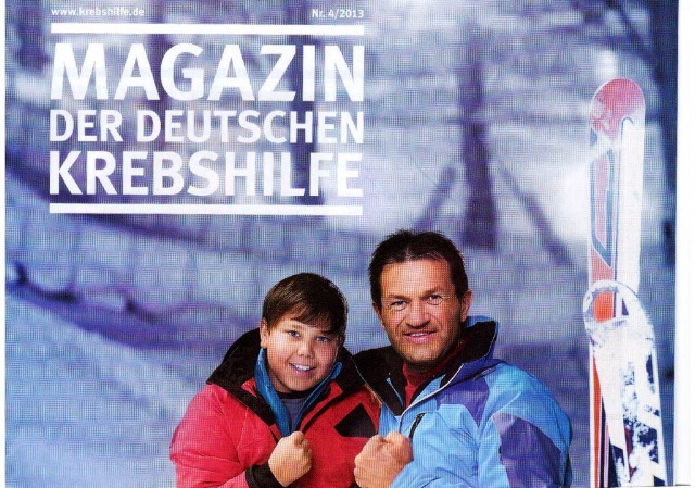 Mit aller Kraft gegen den Krebs" ist eine Aktion der von der Ärztin Dr. Mildred Scheel gegründeten Bürgerbewegung, in der auch junge und erwachsene Krebskranke an der Information und Aufklärung mitwirken. Anderen Mut machen ist das gemeinsame Ziel des deutschen Paralympics-Gewinner Alexander Spitz (rechts) und des zwölfjährigen Leander (links). Als Kinder haben beide den Knochenkrebs besiegt. Trotz ihrer körperlichen Behinderung sind beide zu leidenschaftlichen Skifahrern geworden.