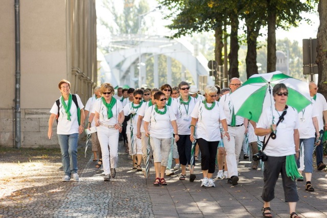 Bei einem Stern-Marsch in Magdeburg waren die Aktiven der Frauenselbsthilfe nach Krebs" nicht zu übersehen. Begleitet wurden sie von Personen, die sich als Botschafter für die Belange der FSH einsetzen. Sie kommen aus allen Bereichen der Gesellschaft. Sie trugen ihr selbst gewähltes Erkennungszeichen: den grünen Schaal. Diese Farbe wird in Deutschland seit dem Mittelalter mit dem Sinnspruch verbunden: Grün ist die Hoffnung". Hoffnung zu vermitteln und Krebspatienten zu helfen ist auch das erklärte Ziel der FSH.