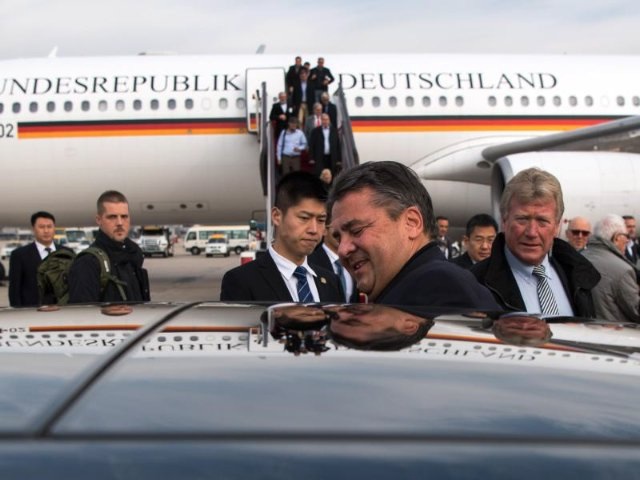 Die deutsche Bundesregierung von Angela Merkel hat Ärger an fast allen politischen Fronten. Das zeigte anfangs November auch der Affront gegen Bundeswirtschaftsminister Sigmar Gabriel (SPD) bei dessen offiziellem Besuch mit einer Wirtschaftsdelegation in Peking. Der chinesische Handelsminister Gao Hucheng hat den gemeinsamen Auftritt mit Gabriel bei einer Wirtschafskonferenz abgelehnt, nachdem dieser nicht gleich den chinesischen Wünschen entsprach, dem Ankauf von einigen deutschen Hochtechnologie-Firmen zuzustimmen. Das Bild zeigt Bundesminister Gabriel bei der Ankunft in Peking.