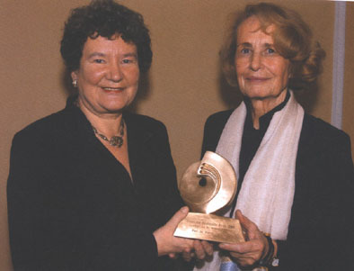 Nach dem Motto "Helfen. Forschen. Informieren." fördert die Deutsche Krebshilfe Projekte zur Verbesserung der Diagnose, Therapie, Nachsorge und Selbsthilfe. Für Verdienste wird der Deutsche Kebshilfe Preis" verliehen. Das Bild zeigt DKH-Präsidentin Prof. Dr. Dagmar Schipanski bei einer Übergabe des Preises an Professor Dr. Dr. Almuth Sellschopp (rechts) als Würdigung ihrer wegweisenden Arbeiten in der Psycho-Onkologie.