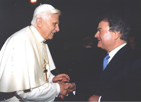 Pope Benedict XVI. greets among other illustrious guests at the concert in the Vatican the president of Boulevard Metropolis, Stephan Vogel (Berlin).