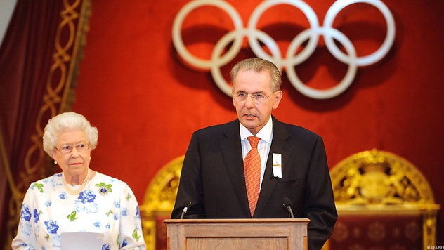 Die britische Königin Elizabeth II. und IOC-Präsident Jacques Rogge bei einem Empfang in London. Bereits zum Start der Olympischen Sommerspiele wünschte die Queen allen Sportlern viel Erfolg und Glück".