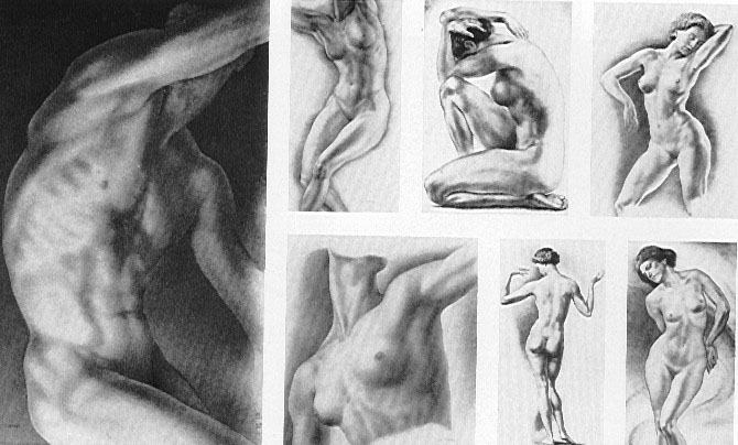 Wilhelm Tank: Anatomic drawings of a man and a woman. Professor Wilhelm Tank was the leading artist in the art of anatomic drawings in the first half of 20th century. His works have remained a standard for all college texbooks of anatomy.